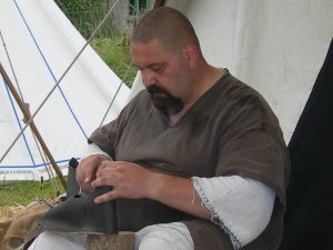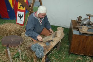 Chargé de la fabrication et de la réparation des cottes de mailles, le haubergier suit la troupe dans toutes ses campagnes militaires.