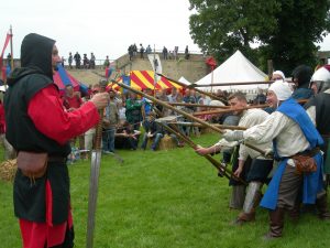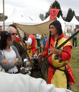 recherches historiques, la présentation d’arme permet de reproduire les faits et gestes du combattant médiéval, démonstration à l’appui.