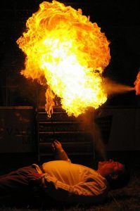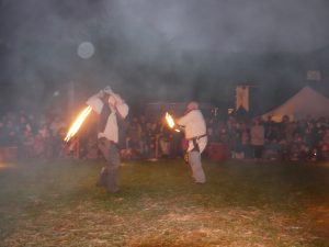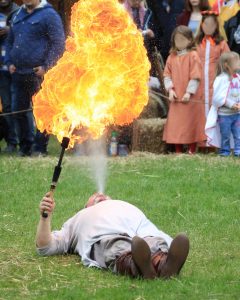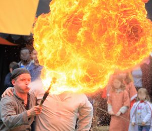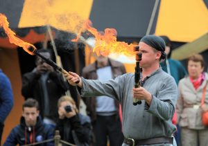 En échange, les soudoyers se divertissent en les regardant jongler avec des couteaux, des haches, des torches, des boules de cuivre, marcher avec des échasses ou sur les mains.